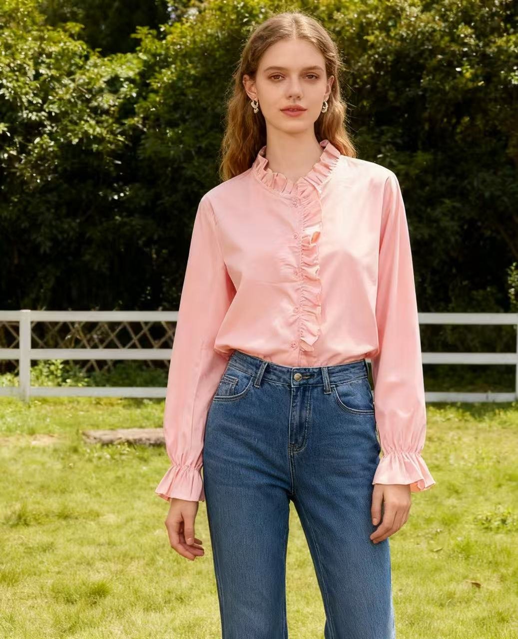 Blusa elegante con volantes y cuello redondo ✨