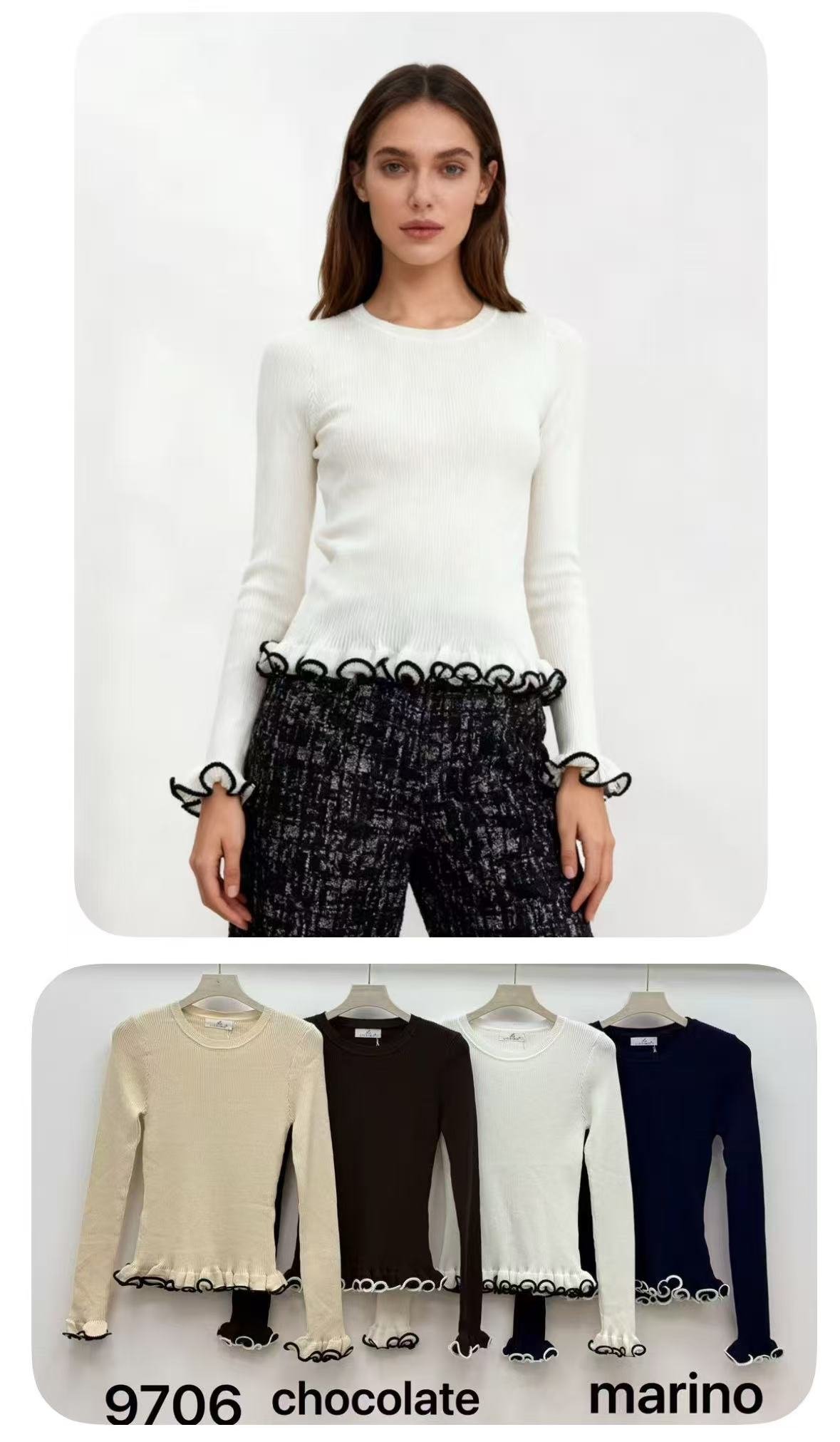 Jersey de canalé con volante en puños y bajo